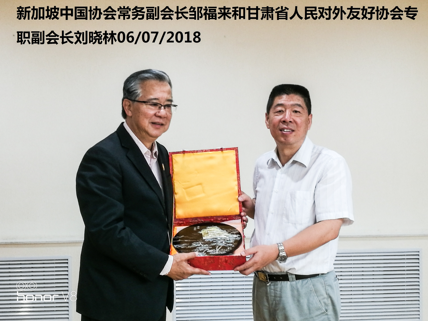 新加坡中国协会受中国东盟商务部主任郭传维邀请参加兰州第二十四界商贸洽谈会,丝绸之路合作发展高度论坛,会议期间,不期而遇见到了新加坡副总理张志贤,马炎庆高级政务次长,孙雪玲高级次长,陈有明高级政务次长和罗家良大使。新加坡中国协会也拜会了甘肃省友协,省教育厅,兰州大学进行了深入的交流。甘肃友协主席刘小林认识谢镛老会长,回顾了以往双方的友谊,邹福来副会长介绍新中友协的历史,目前新中协会在中国的联络机构,新中协会为中国与新加坡国际贸易,文化艺术交流方面做出的贡献,新中友协以后的愿景。会议期间参与了甘肃的绿色生态产业,环保资源,东盟南部通道的大策略等项目的探讨。与兰州大学建立了大学老师互访,大学生互换等意向,把新中协会教育扶贫的计划逐步落实。甘肃友协希望和新加坡中国协会加强联系,促进双方友谊。
