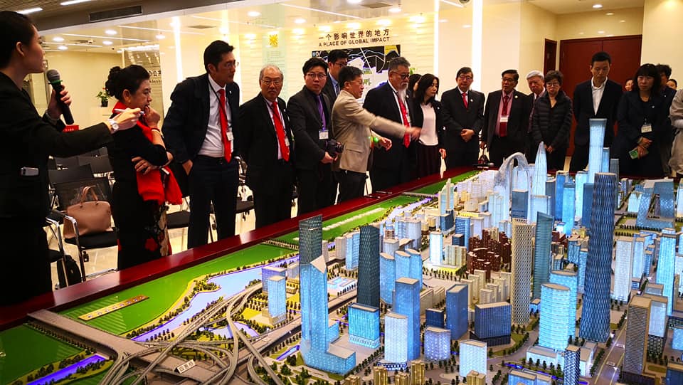 新加坡中国协会北京考察团在观看CBD沙盘介绍与宣传片