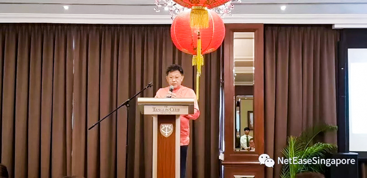 新加坡中国协会高泉庆会长致开幕辞,他表示,2019年,为庆祝新加坡开埠200周年暨中华人民共和国成立70周年,新加坡中国协会邀请了中国中共中央党校的教授们前来新加坡交流,并与中国驻新加坡大使馆及中国文化中心一起,交流分享中国在这70年来的发展历程与对未来的展望,大大加深了新中两国民间交流的了解与友谊。2020年,新中协会正在筹备一系列活动,为庆祝两国建交30周年。