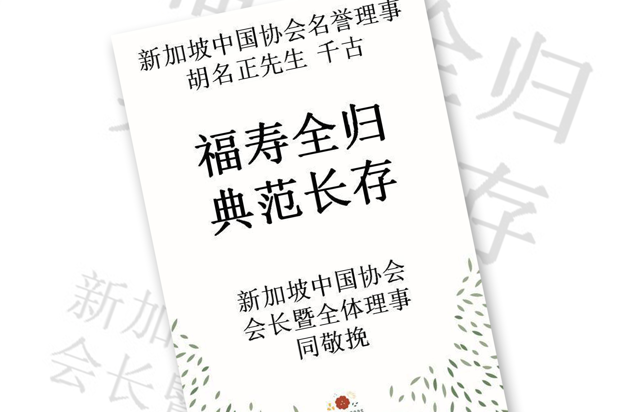 新加坡中国协会名誉理事胡名正先生千古