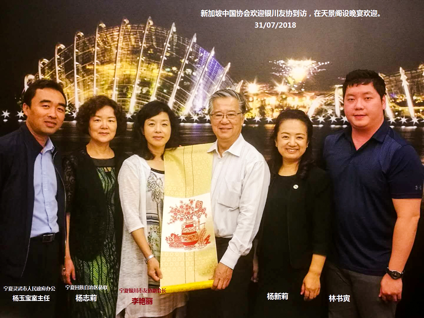 2018年7月31日至8月1日,银川市侨联主席、银川市经济技术合作和外事侨务局副局长李艳丽率代表团一行6人赴新访问。李艳丽也是银川市友协副会长。